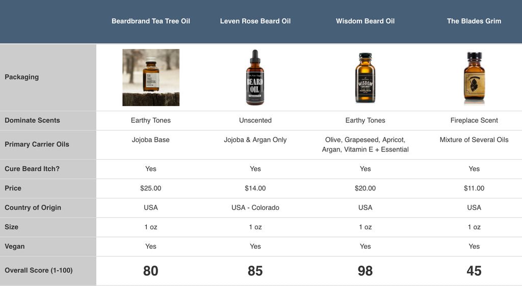 Check out Shawn’s chart comparing the four beard oils he reviewed.